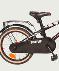 Maak kennis met Jayne, een 16 inch BikeFlip kinderfiets! Deze Jayne van BikeFlip is uitgevoerd in de kleur Zwart en heeft een terugtraprem en handrem. Er zijn geen versnellingen. Het kabelslot zorgt voor veiligheid bij het parkeren en de siliconen verlichting verhoogt de zichtbaarheid. Jayne staat te wachten om de wereld met jou te verkennen!