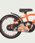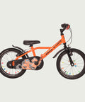 Meet Rob, a 16-inch B-TWIN children's bike! Rob has a cheerful orange color and is equipped with hand brakes. The bike has no gears and comes with a cable lock. Silicone lights ensure visibility at dusk. With 16-inch wheels, this is a compact bike suitable for young riders learning to ride. The B-TWIN brand is known for its practical designs. Rob is ready to take you wherever you want to go!