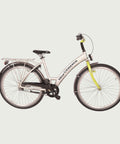 Meet Annemarieke, a 26-inch Bike Fun bike! This silver bike is equipped with a coaster brake, three gears, a frame lock, and fixed lights. Annemarieke is waiting to explore the world with you!