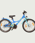 Jady is a tough 20 inch mountain bike in a striking bright blue, designed for adventure and speed. With both hand brakes and a coaster brake, and 3 gears that make it possible to cycle up hills as well as quickly zoom through flat areas. Jady is ready to explore the road with you, whether it's a ride through the park or an adventure in nature!