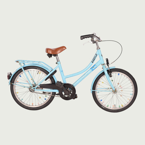 Meet Wilka, a 20-inch Alpina children's bike! This blue Wilka bike is equipped with a coaster brake and handbrake. It also has a frame lock and fixed lights. Wilka is ready to take you wherever you want to go!