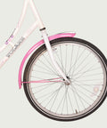 Meet Noé, a 24-inch Volare kids' bike! This kids' bike has a white and pink frame, a coaster brake, and no gears. Noé is waiting to explore the world with you!