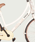 Meet Peggy, a 26-inch Cortina bike! Peggy comes in a fresh white and offers a practical combination of comfort and reliability. This bike has a coaster brake for easy, safe stops and three gears, making it easier to tackle tough hills and easier on long rides. A ring lock lets you safely leave it behind, and fixed lights ensure visibility in the dark. Peggy is ready to take you wherever you want to go!
